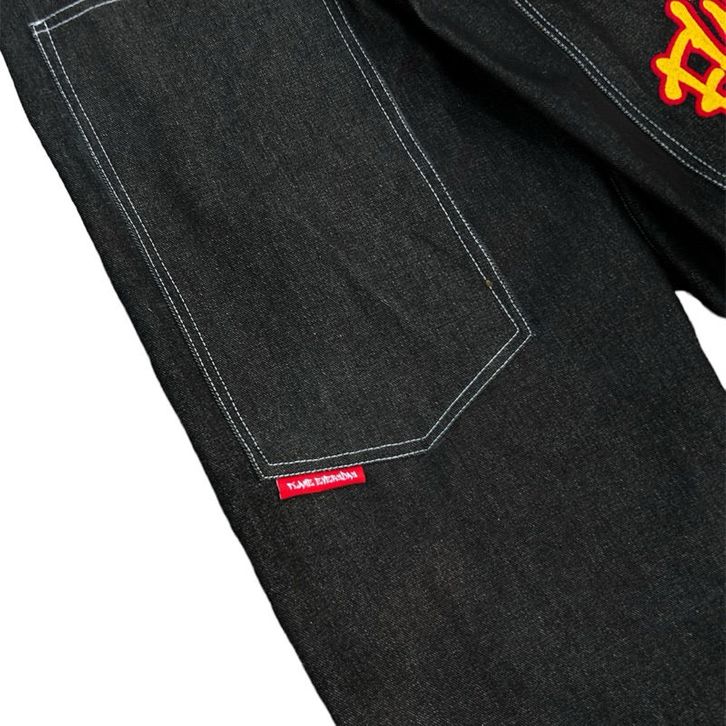 Flame Everyday | Celana Denim Y2K | Denim Big Pocket Bordir | Raw Denim 13oz