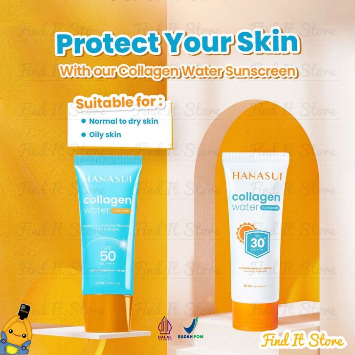 Hanasui Collagen Water Sunscreen SPF30 SPF50 | Sun Protection | Perlindungan Sinar Matahari BPOM HALAL