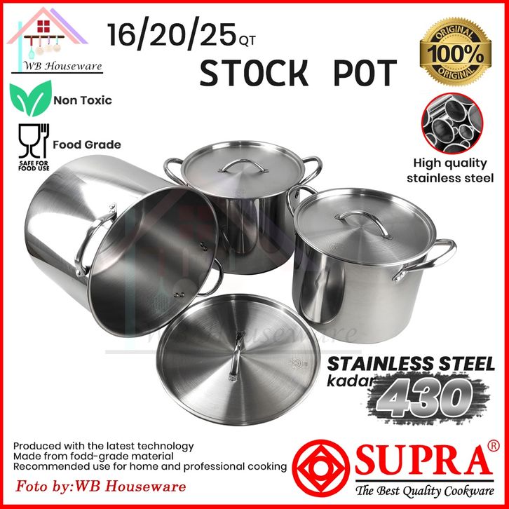 Supra Stockpot 3 In 1 . Tutup Stainless / Panci Rebus Stockpot Kukus Besar / Panci Set 16/20/25Qt