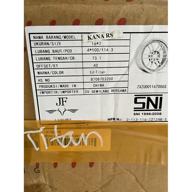 Velg RPF R16 Warna Ej Titan Lebar 7 Et40 Kondisi Baru