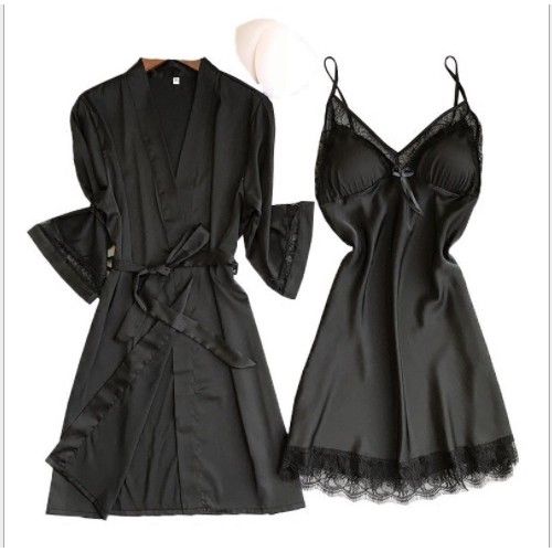 Piyama silk kimono 2 in 1 premium pad chest bra 8013/seserahan/baju tidur/kimono