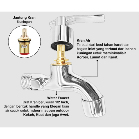 Kran Air Stainless 1/2 Inci 3/4 Inci l Keran Engkol l Cuci Tembok Taman A 407