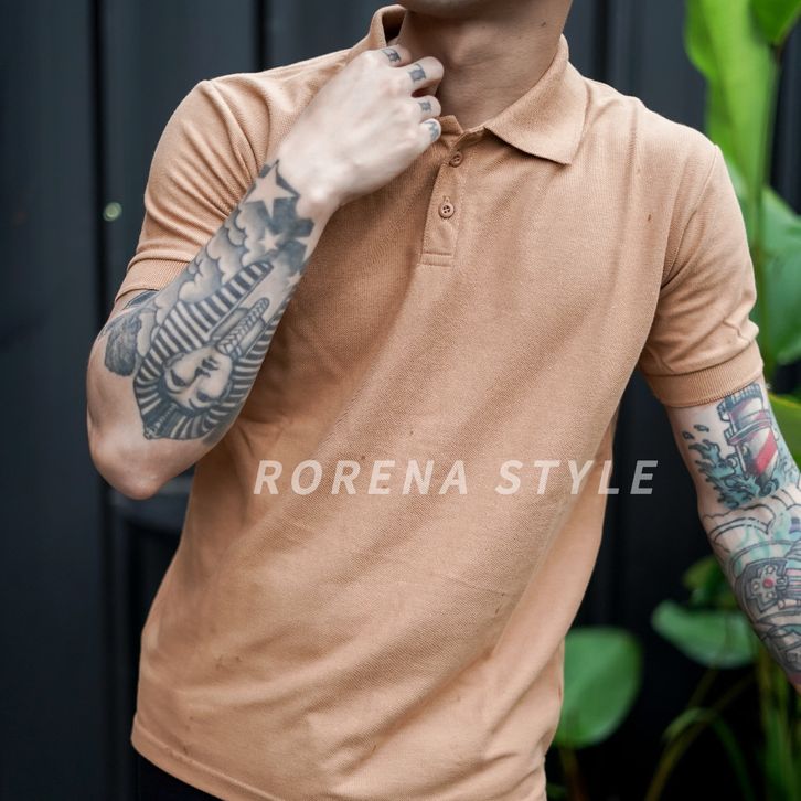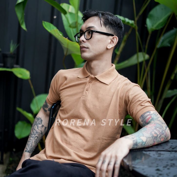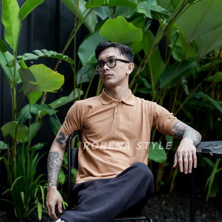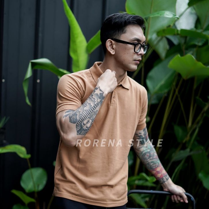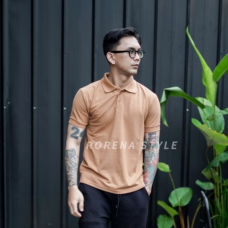 Polo Rorena Shirt Premium Bahan Pique Hexagon Cokelat