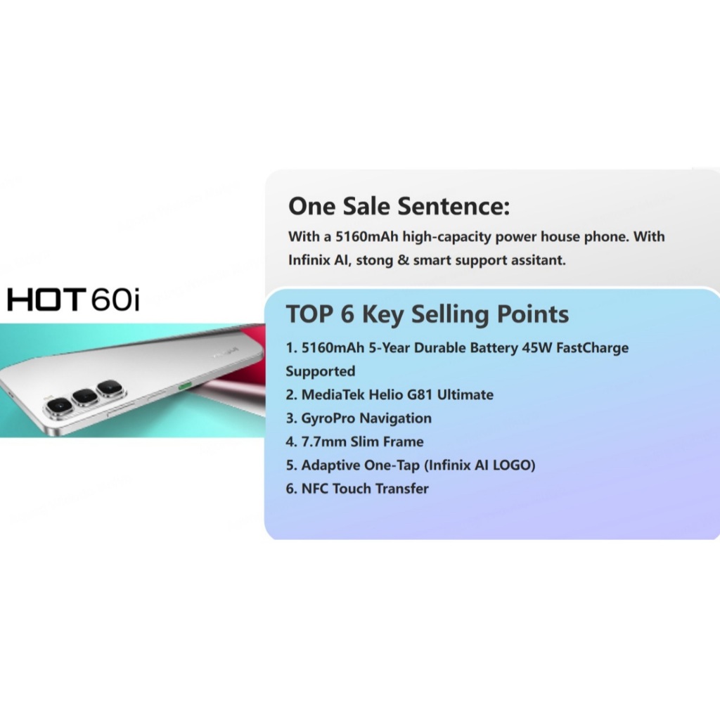 (INFINIX Shop) Infinix Hot 60i 8/256GB - Up to 16GB Extended RAM - Helio G81 - 6.7 inch 120Hz HD+ - 50MP - 5160 mAh NFC