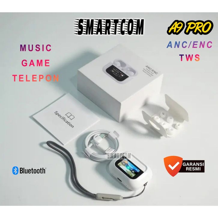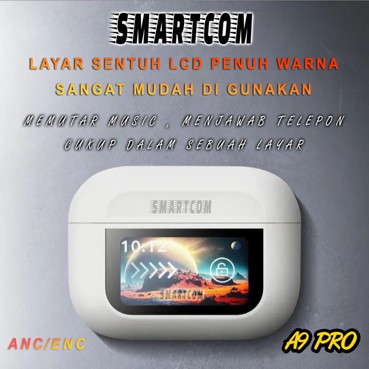 SMARTCOM TWS A9 PRO Touch Screen With Led Charging Case Thepod Noise Cancelling Earbuds ANC ENC