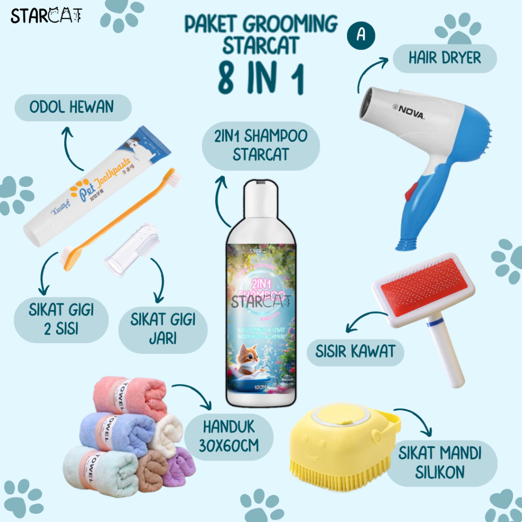 Paket Grooming Shampoo Bubble Gum Kucing Sc Starcat Perawatan Bulu Gigi Anti Jamur Kutu