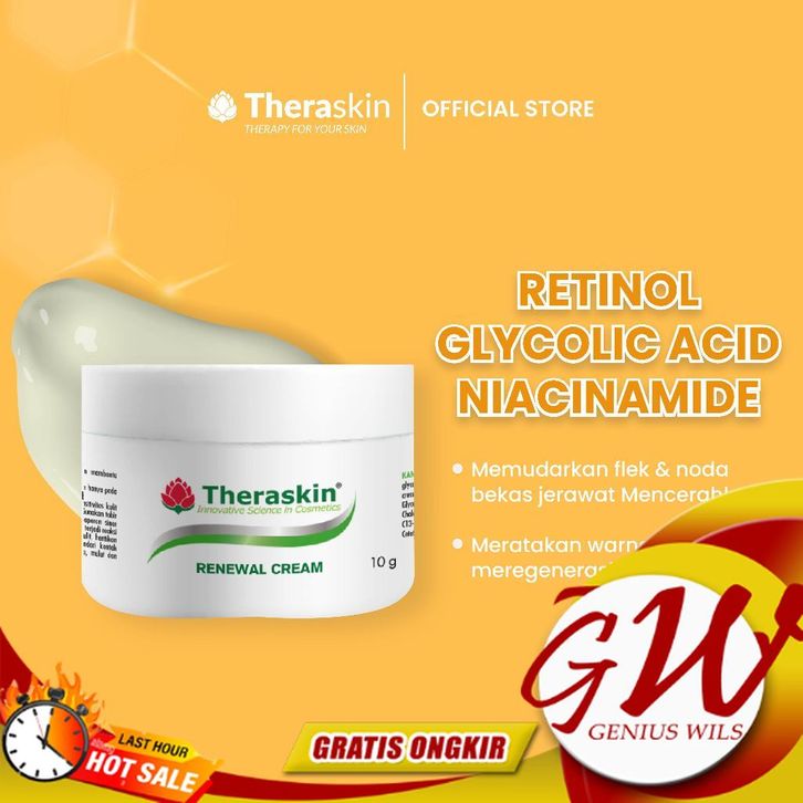Theraskin BPOM Renewal Cream 10g Brightening - Krim malam pencerah untuk Kulit Kusam & Noda Bekas Jerawat