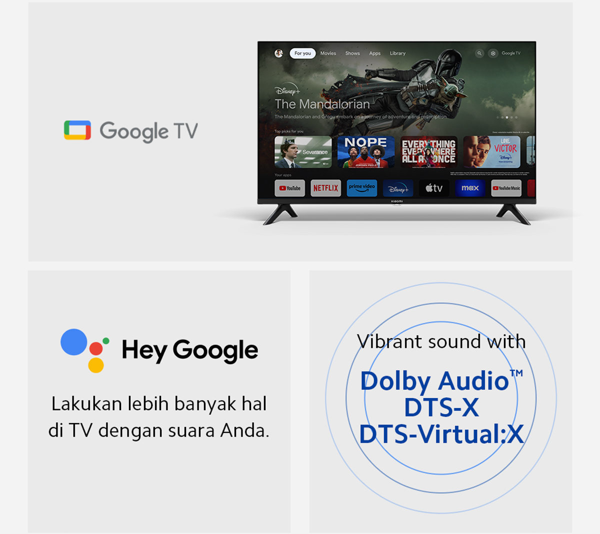 SMART TV XIAOMI A 32 INCH GOOGLE TV ANDROID DOLBY AUDIO YOUTUBE NETFLIX WIFI DIGITAL RESMI