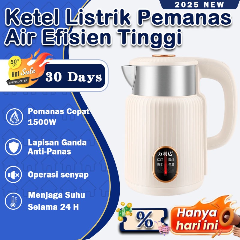【2025 New】Teko Listrik Electric Kettle Pemanas Air Listrik / Food Grade Double Wall Stainless Steel