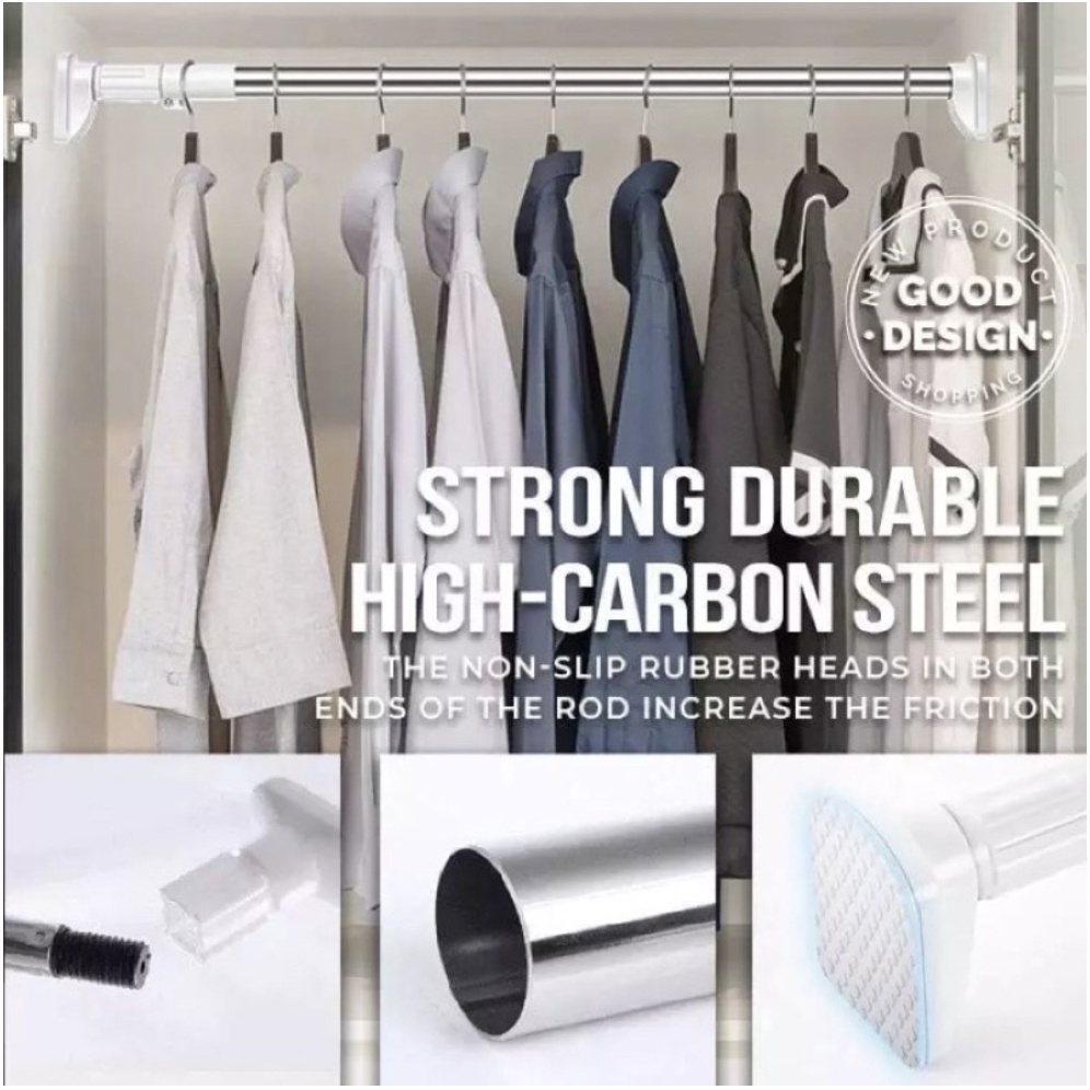 Tiang Gantungan Baju Tongkat Jemuran Pakaian Tanpa Paku Telekospik Bahan Stainless Kokoh Anti Slip Pole