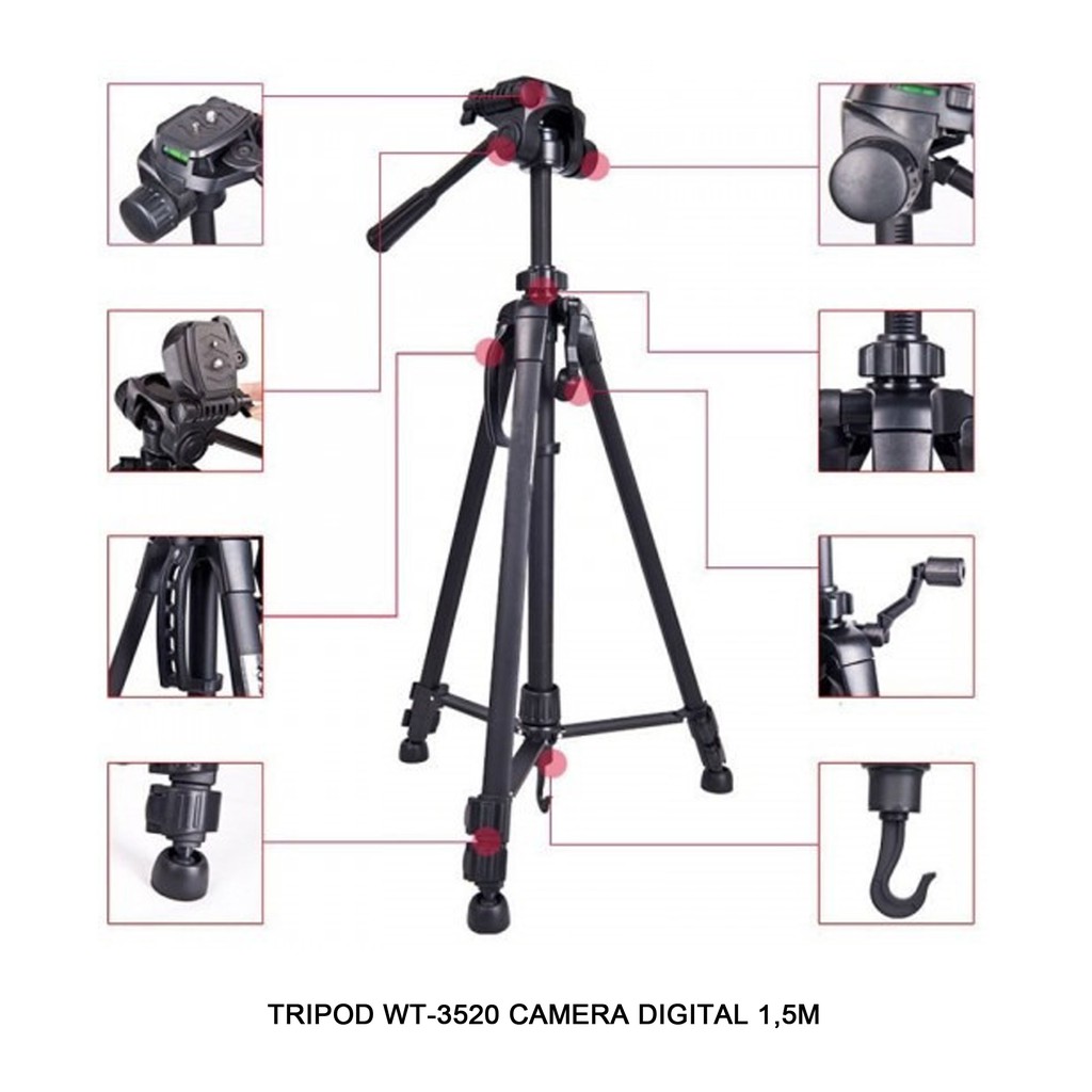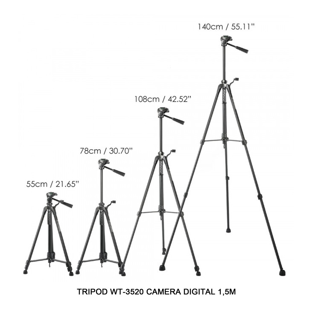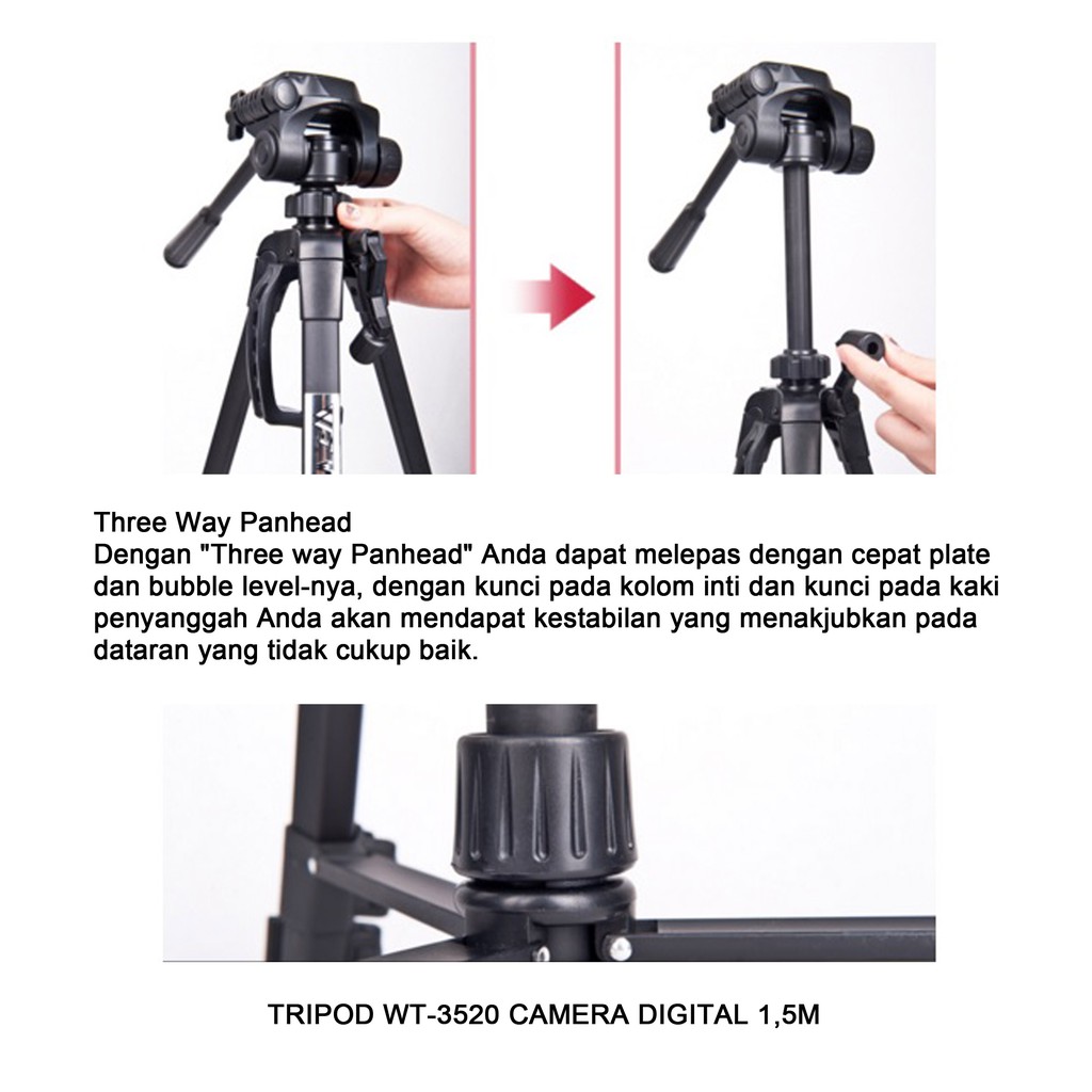 TRIPOD HANDPHONE CAMERA DIGITAL UNIVERSAL WT-3520 PORTABLE BISA LANDSCAPE / PENYANGGA HP KAMERA TINGGI 1,5 M FREE HOLDER