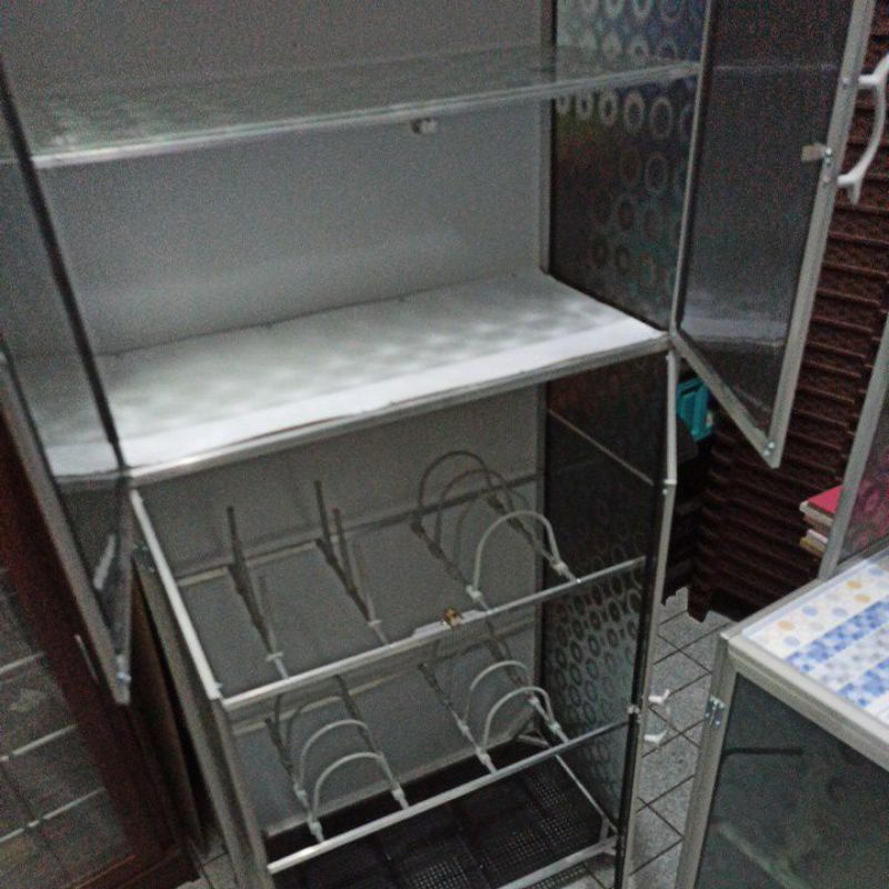 RAK PIRING MINIMALIS MODERN KACA KERAMIK TERTUTUP SERBAGUNA ALUMUNIUM STAINLESS 2 PINTU RATA MURAH BEST SELLER TANPA DP