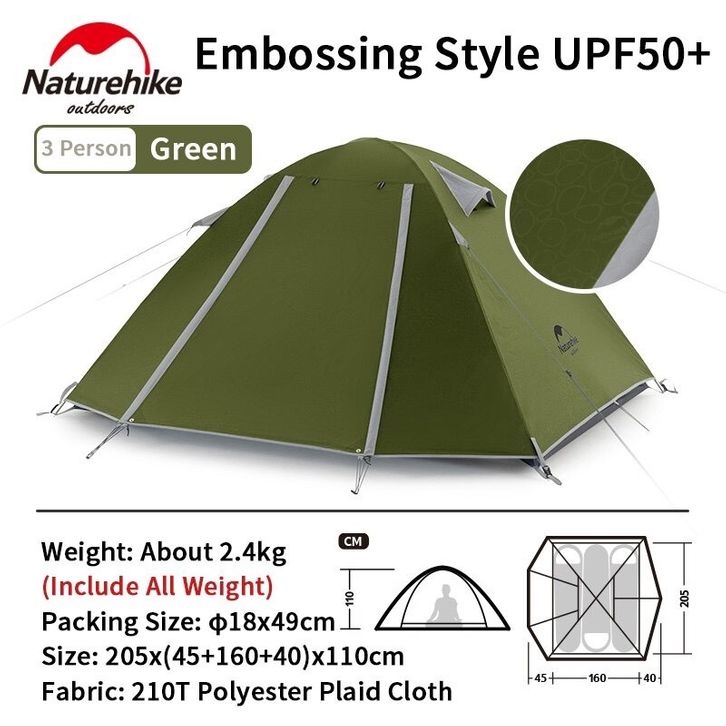 TENDA PROFESSIONAL 3 / 210T / TENDA NATUREHIKE NH18Z033-P (ANTI UV EMBOSSED)