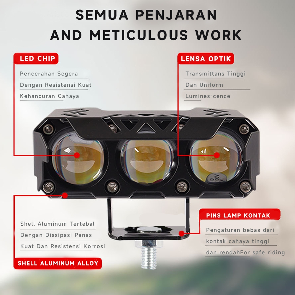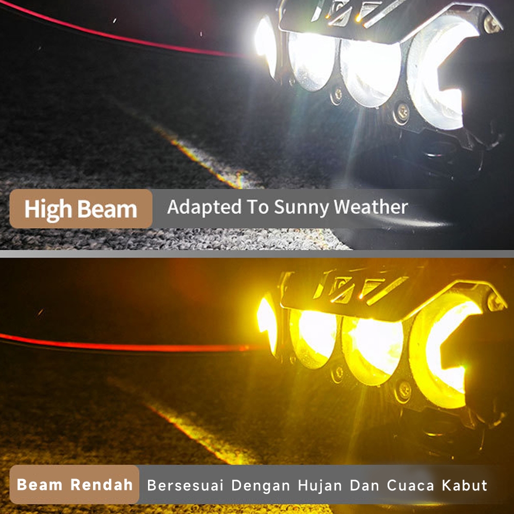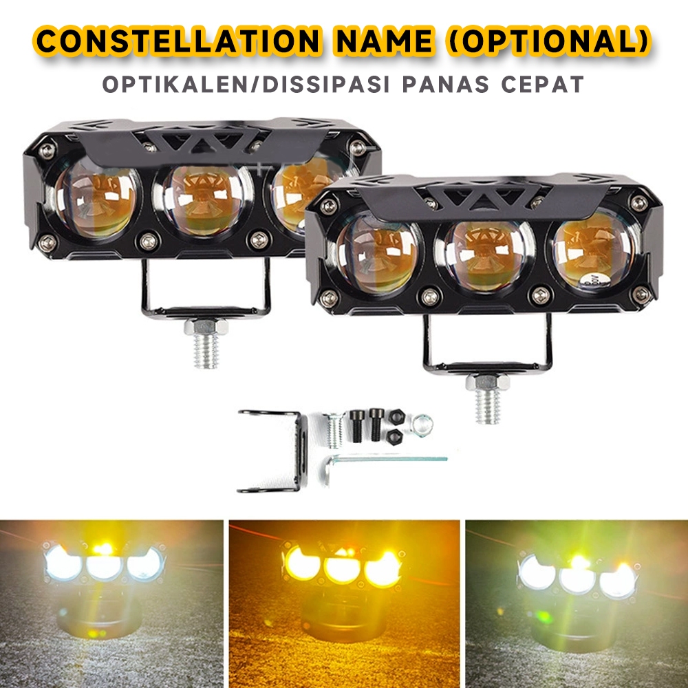 2Pcs Lampu Tembak LED Foglamp CR7 SQL 3 Mata Laser Gun Putih Kuning 2 Warna Waterproof 3 Mata High Low Lampu Tembak