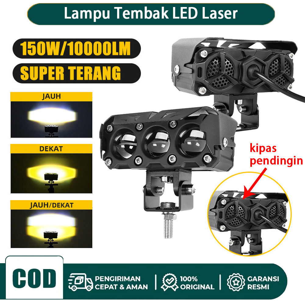 Lampu Tembak Laser SQL 3 Mata Kipas Full Alumunium Putih Kuning Mata Kipas Super Bright 150W 10000LM High Low IP68 Water