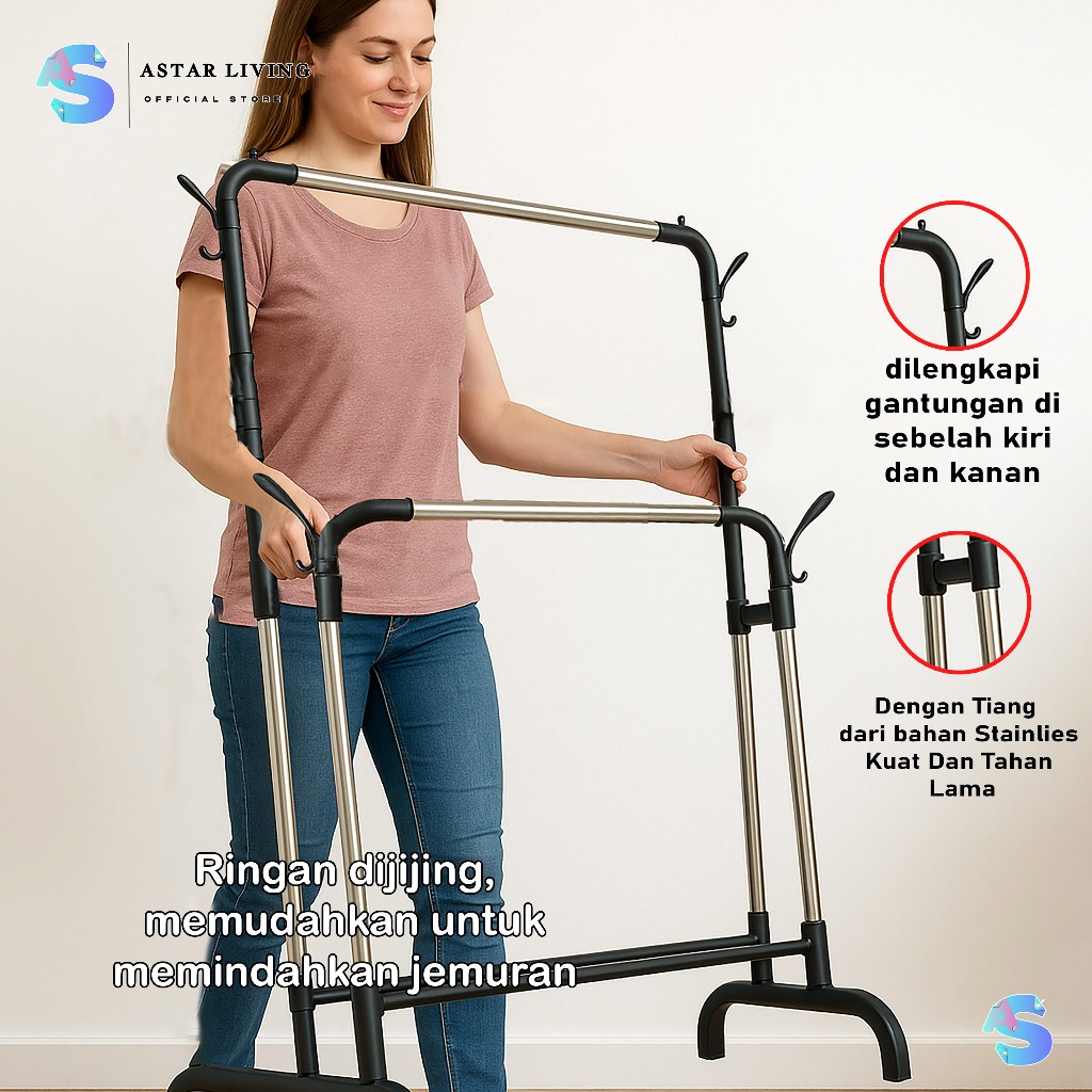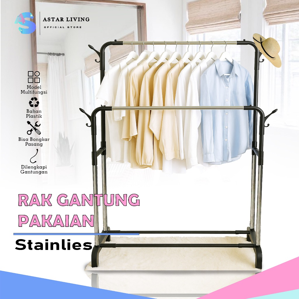 [AL] Stand Hanger Rak Gantungan Baju Multifungsi Stainless Steel