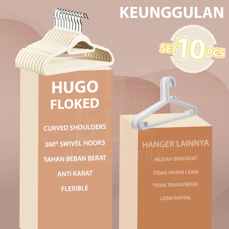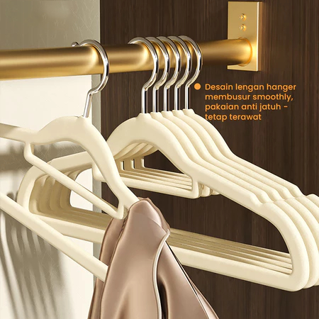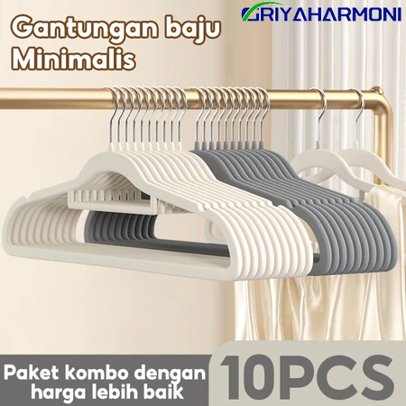 【】Gantungan Baju Dewasa Bahan Suede Hanger Pakaian Dewasa Isi 10 Pcs Premium Hanger Bludru Bahan Tebal