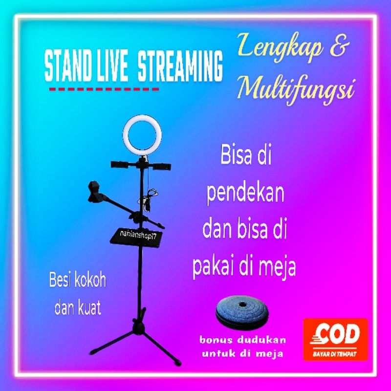 PAKET TRIPOD LIVE STREAMING STAND AUDIO HOLDER 2HP RING LIGHT HOLDER PANJANG STAND RINGLIHT CAMERA LED
