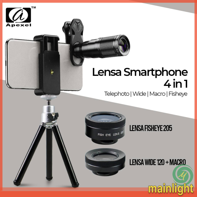 APEXEL Telezoom Lensa Smartphone Plus Tripod Mini Wide Macro Fisheye APL