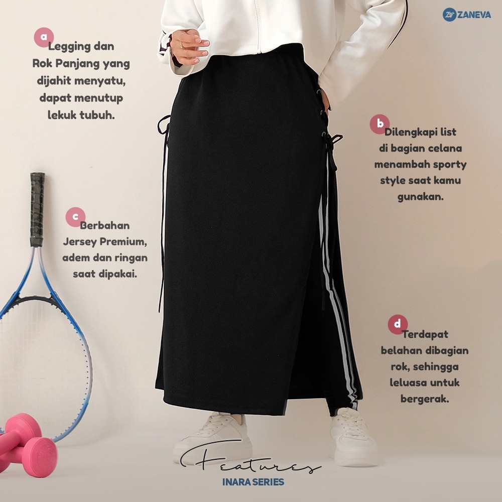 ZANEVA SPORTWEAR ORI - Inara Legging Rok Panjang Sporty ll Sandrine, Cecile Modis, Adem & Nyaman