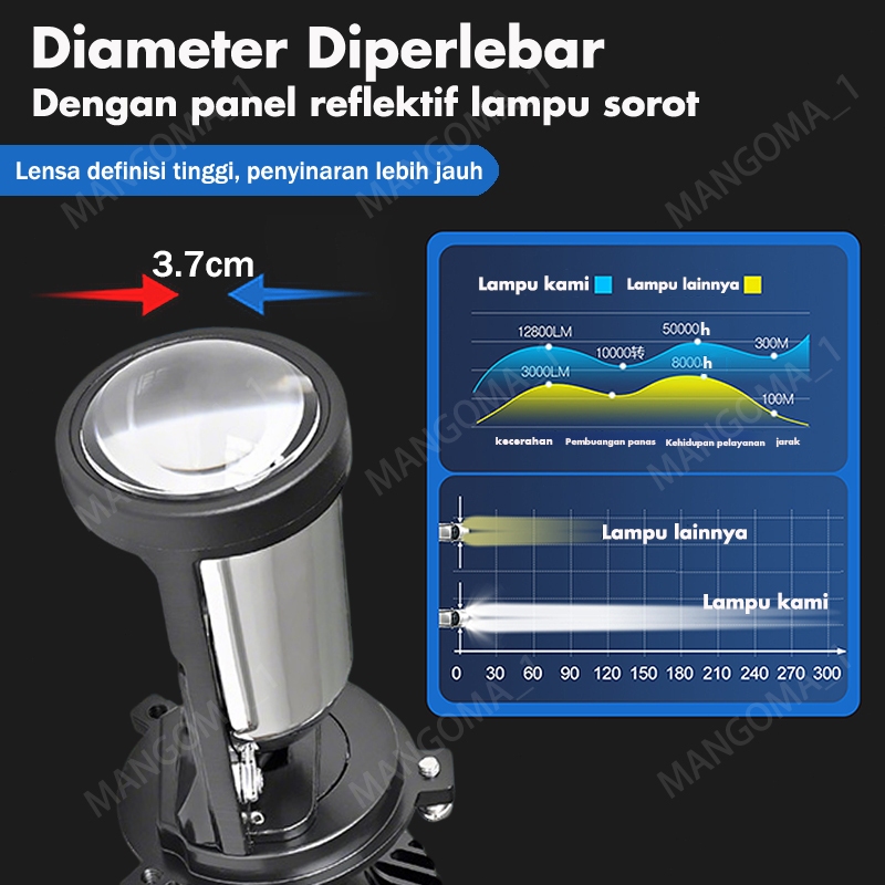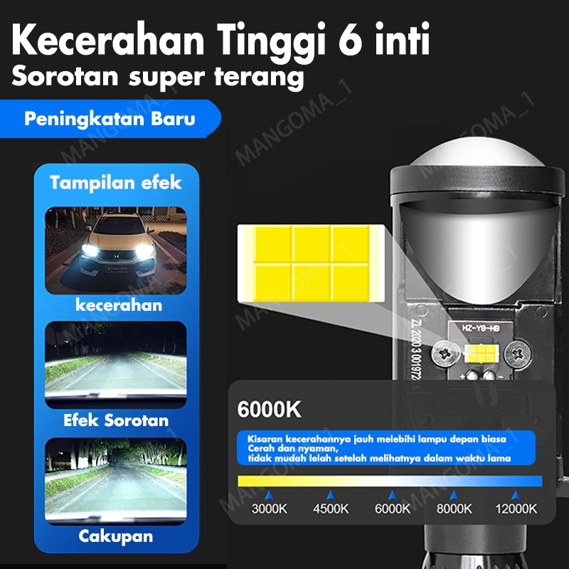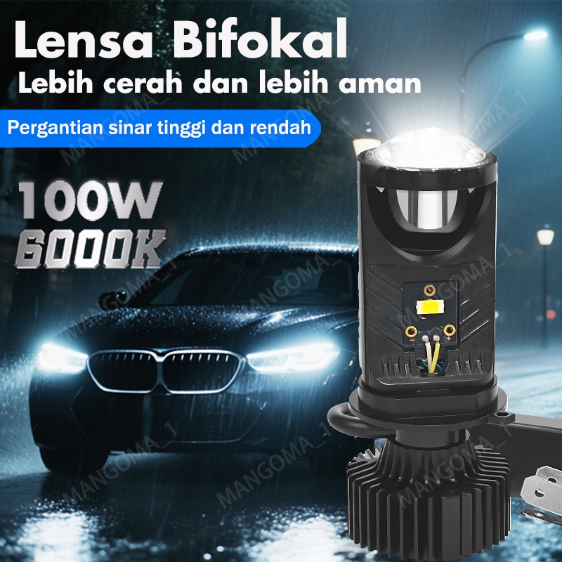 Lampu Led H4 Mobil Y6D Mini Projector Projie Super Terang Lampu Led Mobil 100Watt IP67 Waterproof