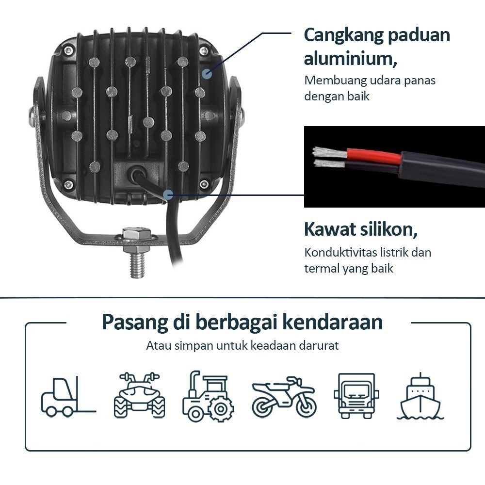 ORI Lampu tembak sorot 50 Watt Dotrex 5 Mata Truck Off Road 12/2(V) Ketebalan 8.2cm