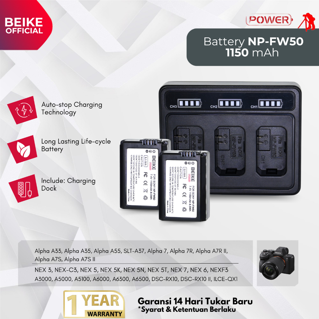 Beike Baterai NP-FW50 kamera Sony A5000, A5100, A6000, NEX 3, NEX 5, Alpha A7S, Alpha A7