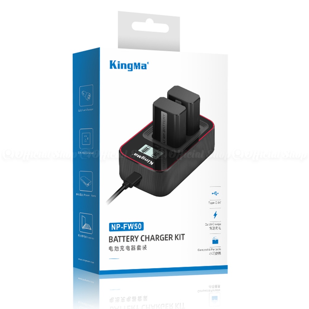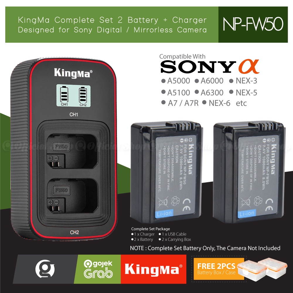 KingMa Paket Complete Battery LCD Charger Set NP-FW50 Sony Alpha A7R A5100 A6000 A6300 A6400 Etc
