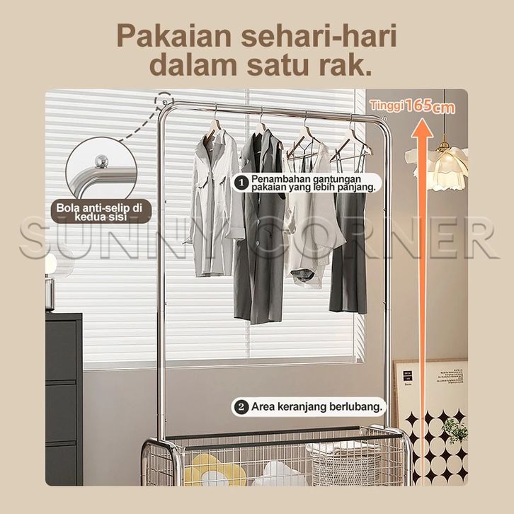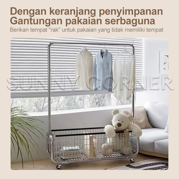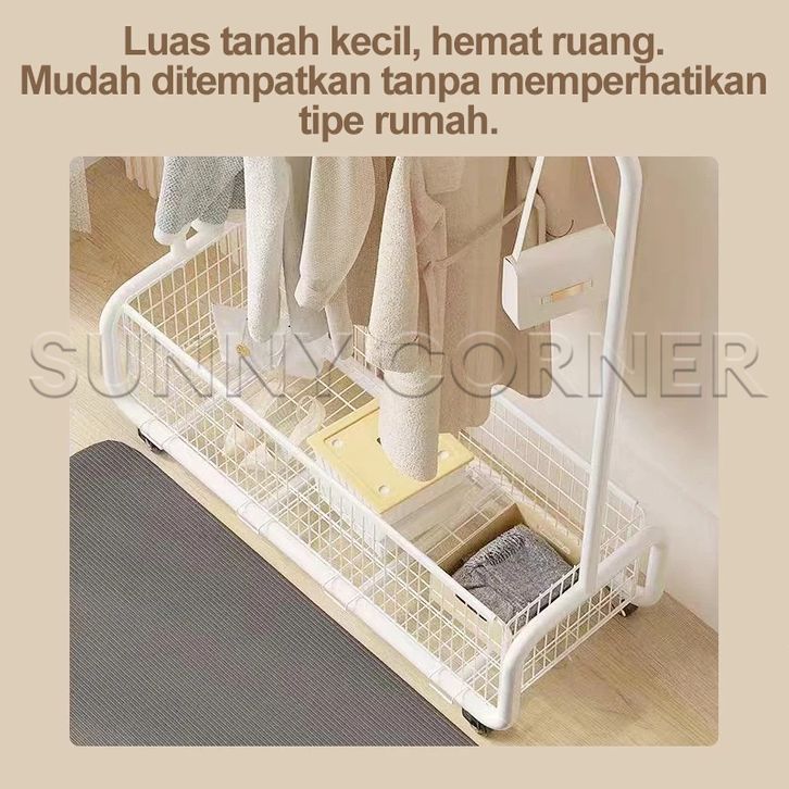 Rak Gantungan Baju Roda Stand Hanger Berdiri Rak Troli Dorong Portable Display Jemuran Baju