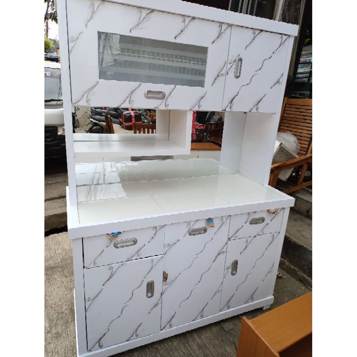 rak piring pintu 3 lemari sayur motif marmer hidrolik sleding cermin keramik kaca laci