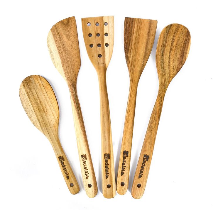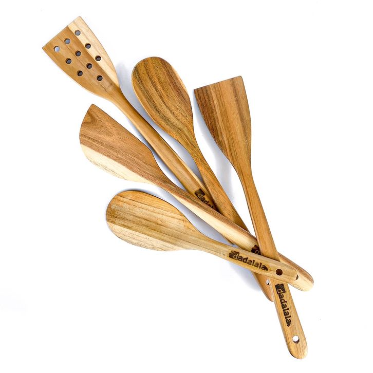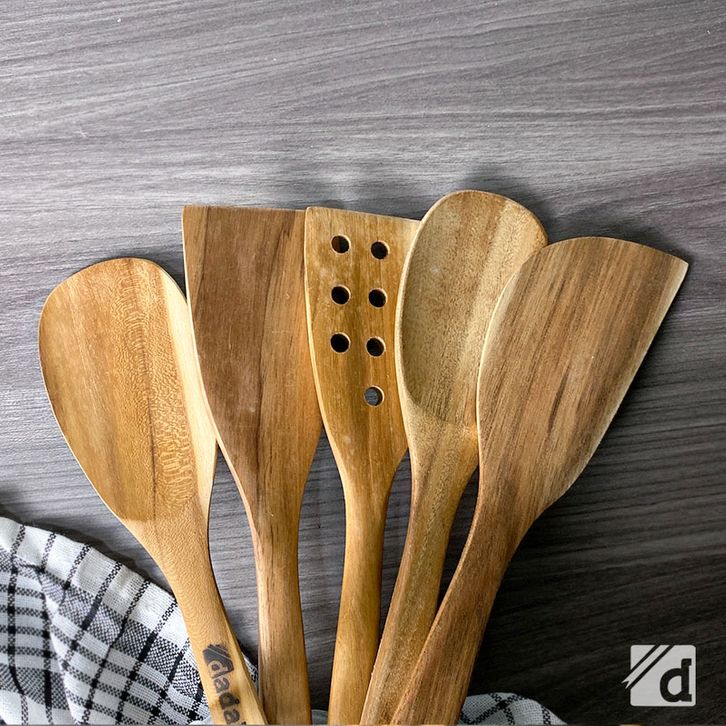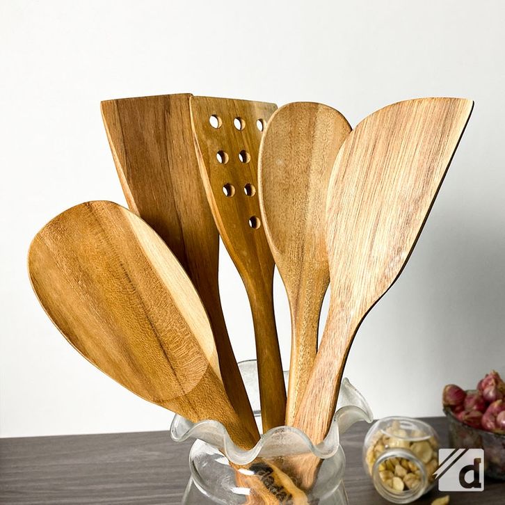 PROMO DADALALA Spatula Kayu Jati (1 Set 5 Pcs) Isi Sodet, Sendok Sayur, Centong Nasi dan Sutil Lubang udidd