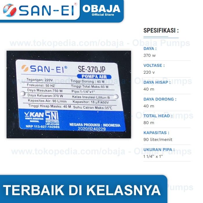 San-Ei Pompa Air Sumur Dalam Jet Pump Otomatis SAN-EI SE 370 JP Tanpa Tabung