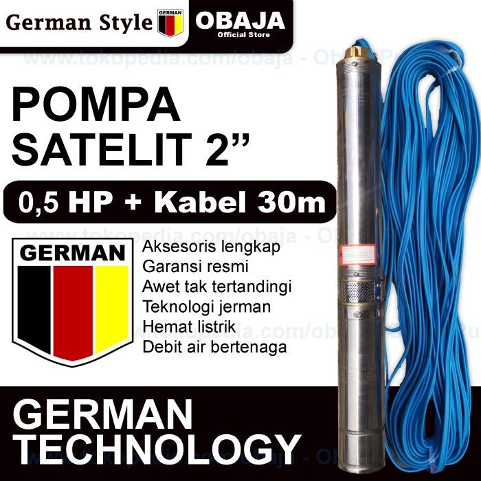 German Style Pompa Satelit 2 inch 0.5 HP + Kabel 30 M German Style