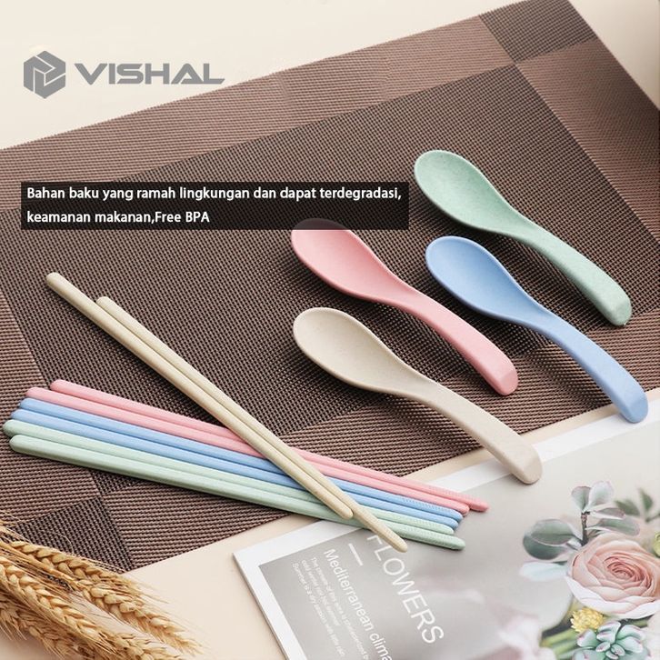 MURAH VISHAL 1Set Dinner Plate Piring Bulat Mangkok Wheat Straw Bowl Sumpit Sendok Free BPA Mangkuk / Gelas /