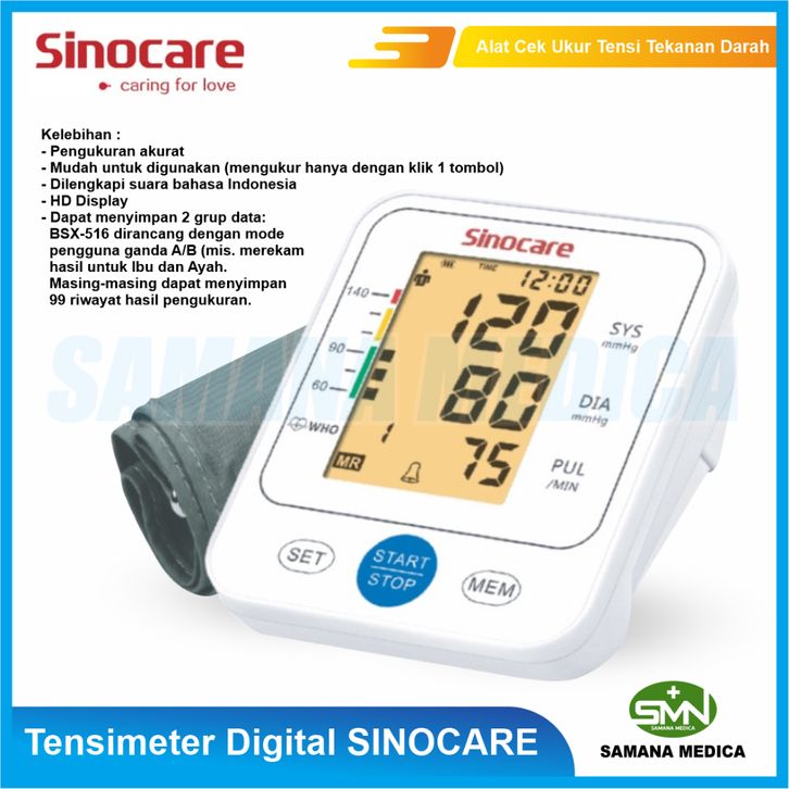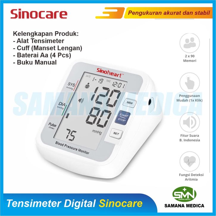 Tensimeter Digital dengan Suara BAHASA INDONESIA SINOCARE Sinoheart BA801 BSX516 Alat Cek Tensi Tekanan Darah dan