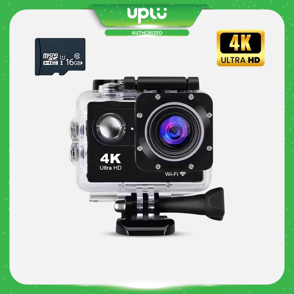Uplu Authorized Sport Camera Wifi 4K 30Fps Action Kamera Vlog Resolusi 16MP Waterproof Anti Air Free MMC 4GB/8GB/16GB