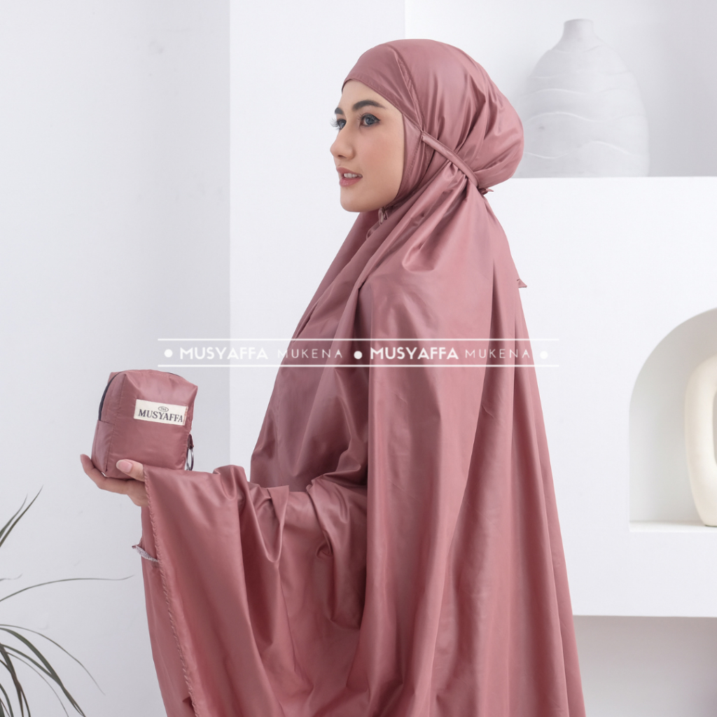MUSYAFFA - Mukena Dewasa Mini Traveling Syahira Series | Travel Pouch Model 2in1 Resleting Dagu