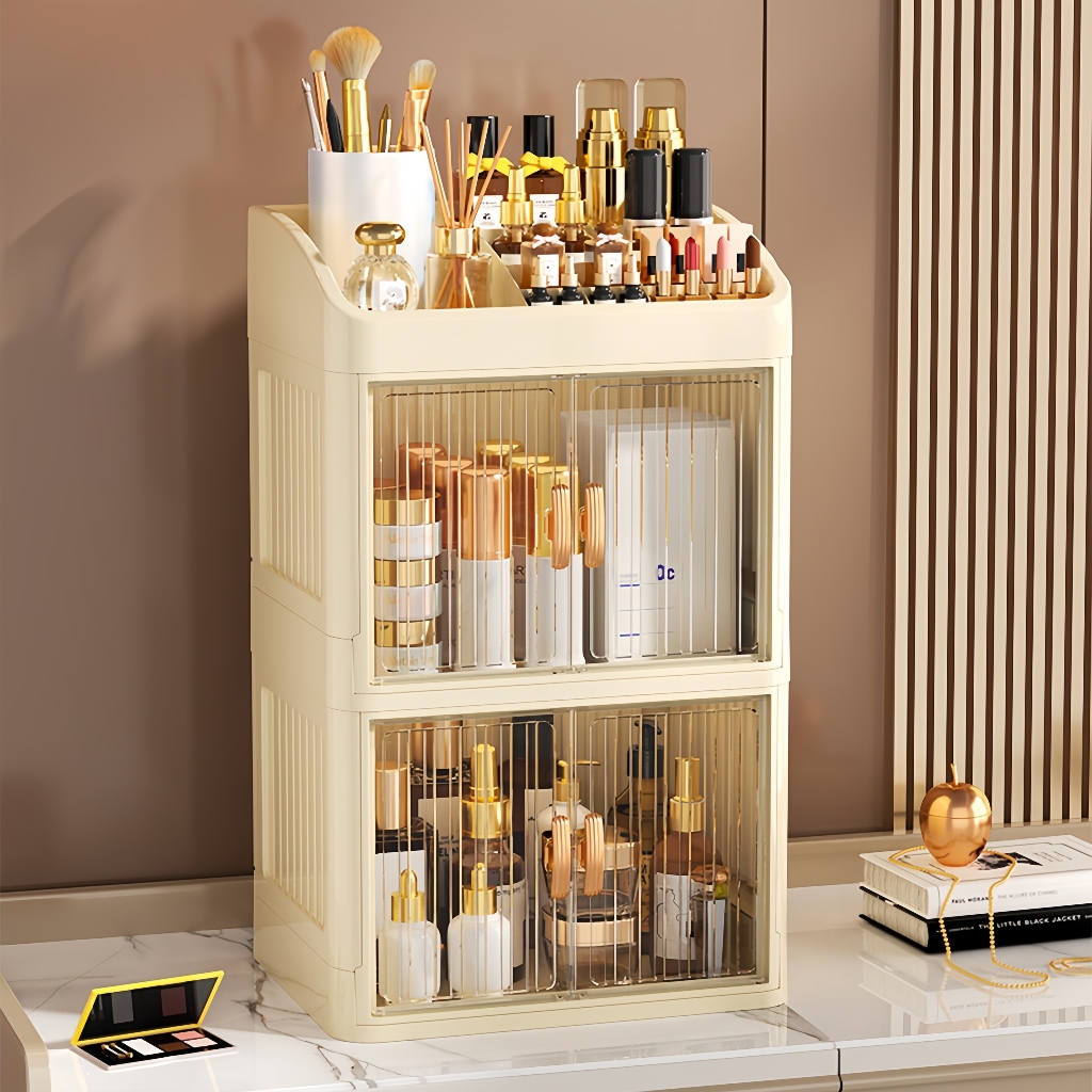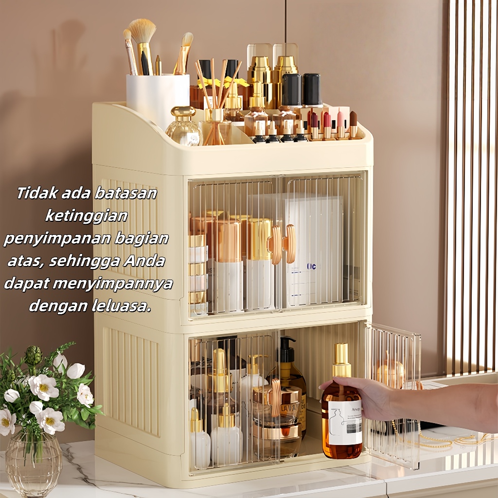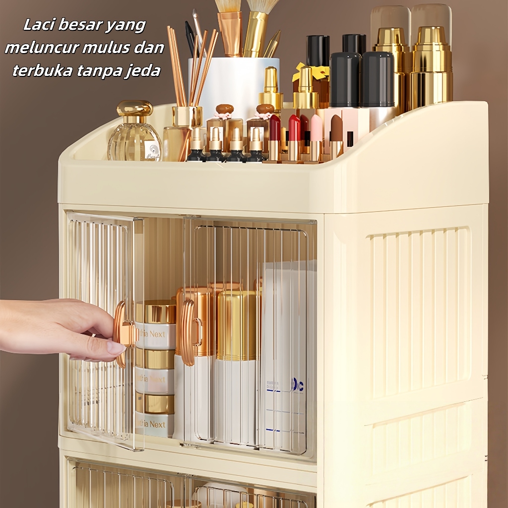 Rak kosmetik serbaguna, kotak penyimpanan makeup 3 lapis/rak kotak penyimpanan perawatan kulit/rak susun pintu desktop