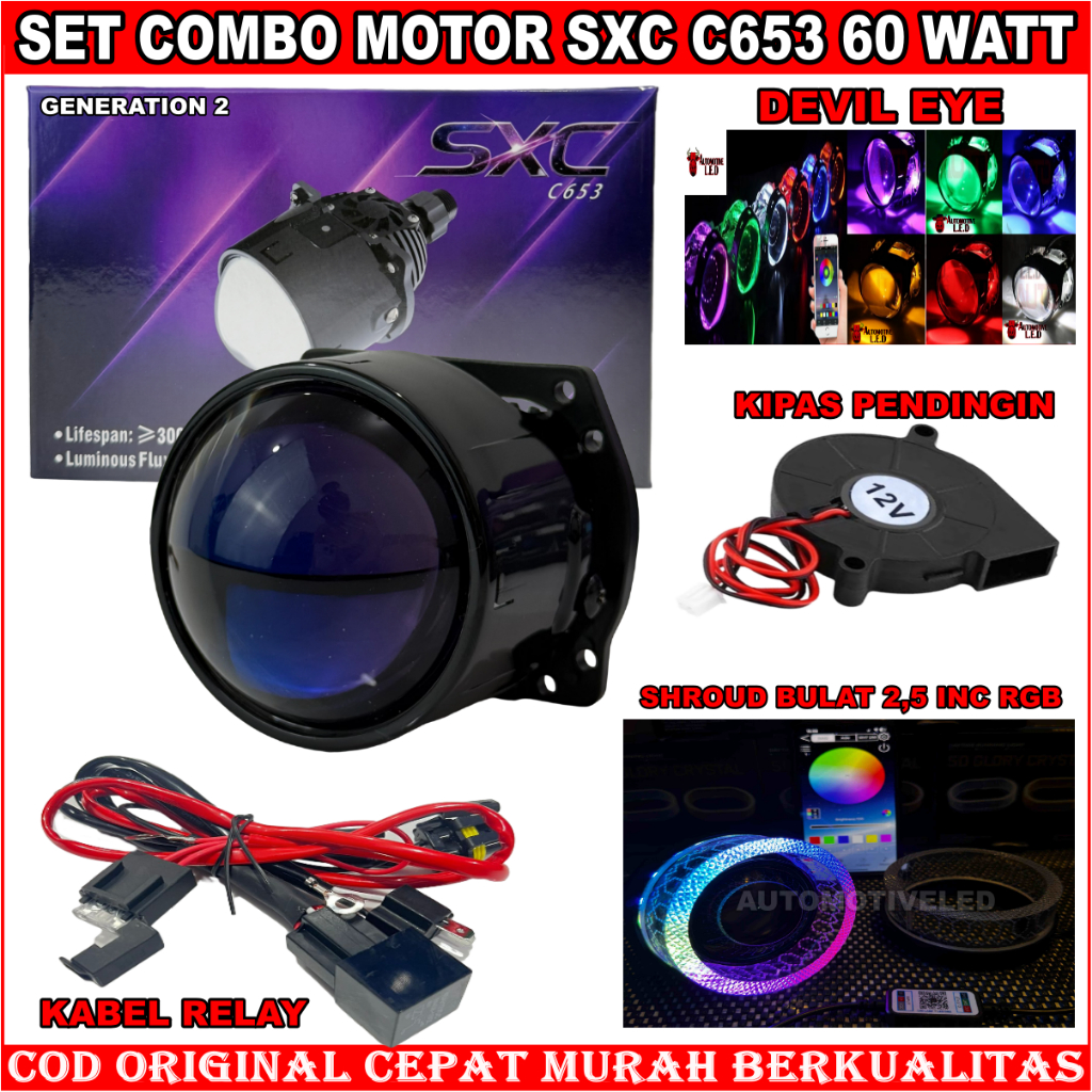 ORIGINAL PAKET COMBO BILED SXC PROJIE BILED SXC C653 2,5 INCHI 60 WATT BLUELENS SXC C653 60 WATT | BILED 2,5 INCHI 60 WATT | PROJIE PREMIUM SXC