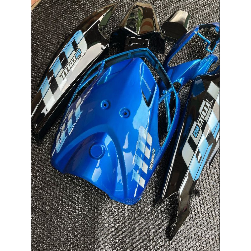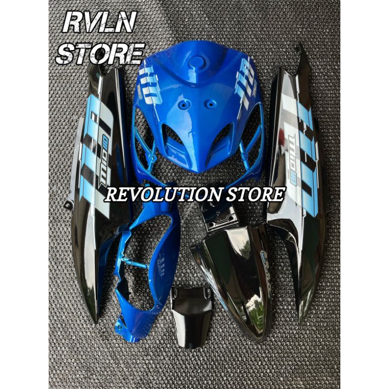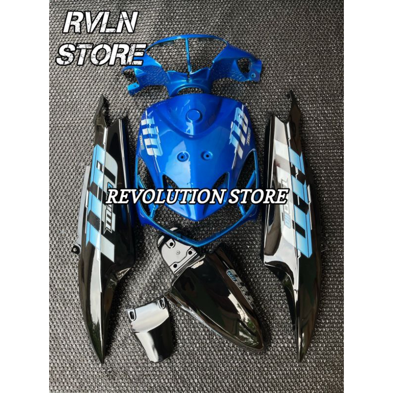 Cover ful body halus full set bodi Alus Yamaha Mio smile biru hitam striping 110 Vietnam style