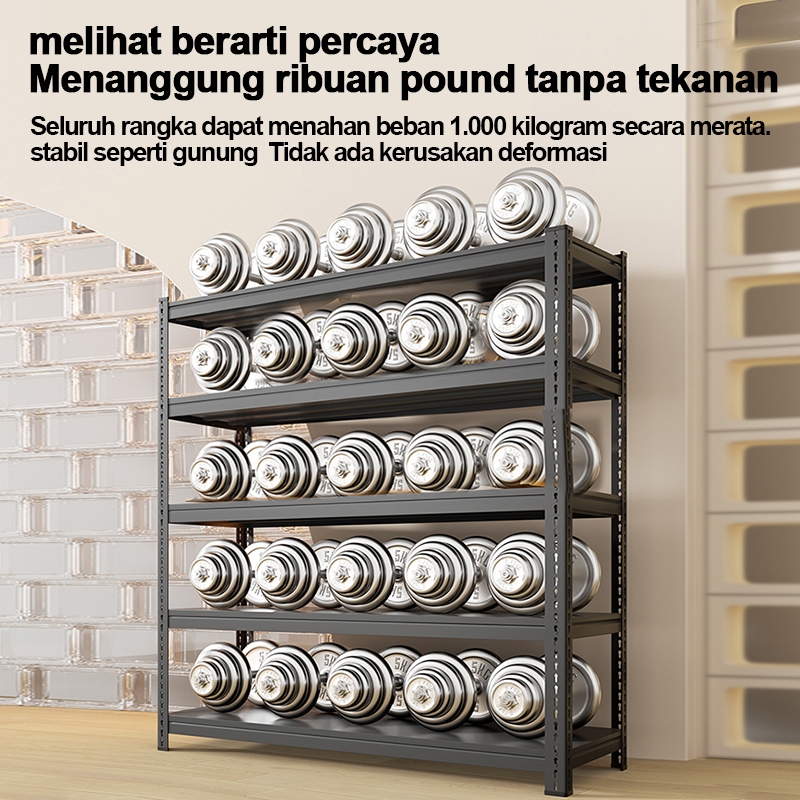 Rak Besi Rak Besi Siku 5 Susun Rak Gudang Serbaguna Rak besi siku lubang Rak dapur Rak Besi Susun Rak Barang 3/4/5 Tingk