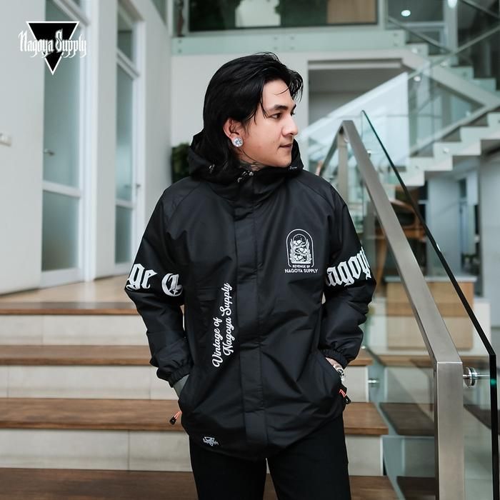 Jaket Parasut Pria - Jaket Casual Skull Original Nagoya Waterproof - Hitam M