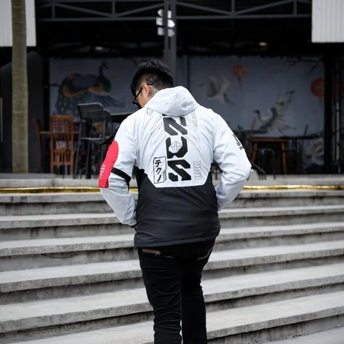 Genious Jaket Casual Waterproof Cyber Putih Hitam Premium - Putih Hitam M