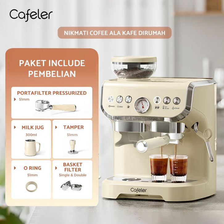 Cafeler Coffee Maker Espresso Mesin Single Heater Sistem Mesin Kopi Espresso Grinder 51MM