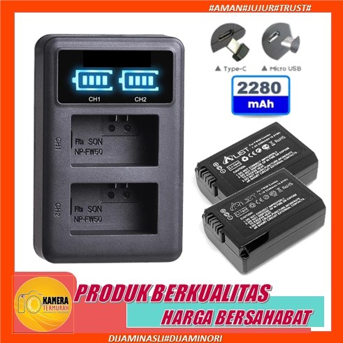 PAKET Battery Batere 2 Baterai 1600 mAh Charger NP-FW50 for Sony a6000 a6300 a6500 a6400 a6600 a7 a7ii