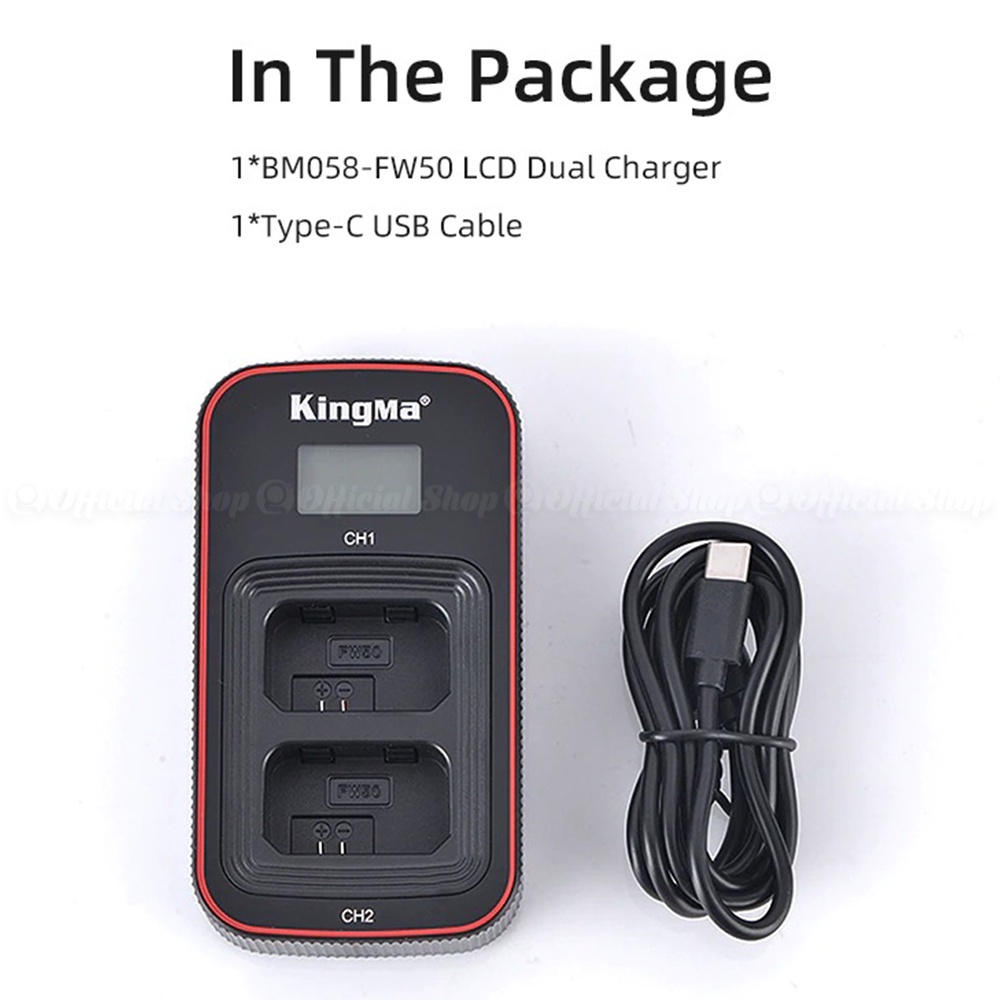 KINGMA LCD DUAL CHARGER NP-FW50 for Sony A6500 A6400 A6300 A6000 A5100 A7R2 A7M2 NEX-7 NEX-6 Etc