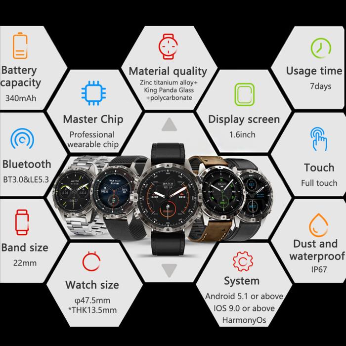 AOLON SMART WATCH WATERPROOF COMPASS BLOOD OXYGEN SMARTWATCH - BLACK
