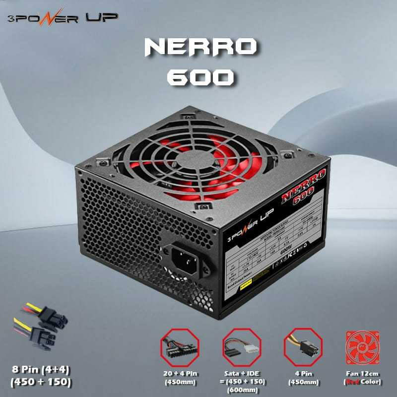 Power Supply ATX NERRO 600W PowerUp FLAT CABLE BLACK