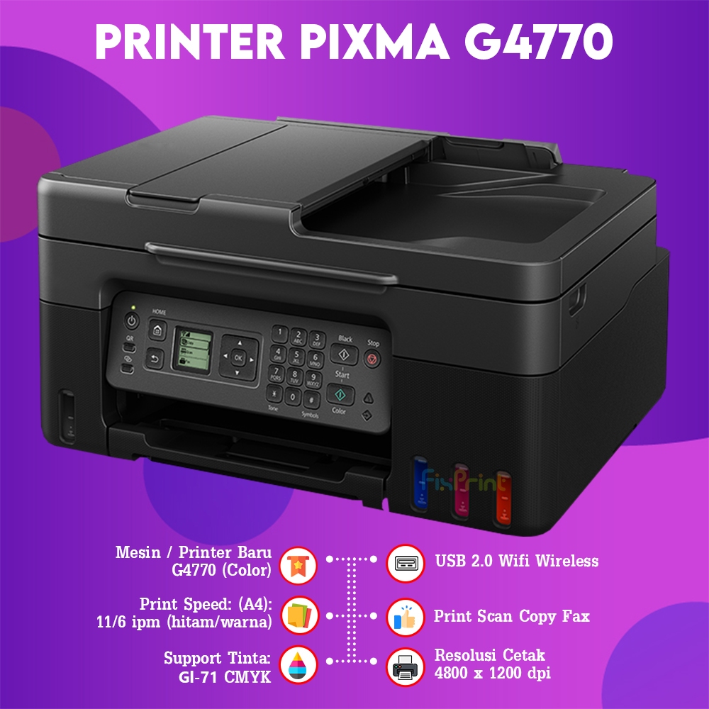 Fixprint Printer Canon PIXMA G1010 G2770 G2730 Printer Efficient Print Scan Copy Inktank G4770 All In One Wifi Fax