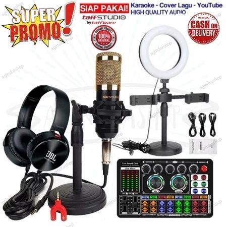 GRATIS Headphone + Ring Light 2Holder Smartphone Paket Rekaman Mic Condenser BM800 + Stand Meja + V8
